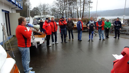 Ruhrpokal der O-Jollen mit internationaler BeteiligungEs starteten insgesamt 29 O-Jollen. Wir konnten uns über eine starke niederländische Truppe freuen, die mit sechs Booten an der Regatta teilnahmen. Darunter war der holländische Meister Jan ten Hoeve, der dann auch die Regatta gewann. Am Samstag konnten bei trübem Wetter und 2-3 bft drei Läufe gesegelt werden. Sonntags schien dann zwar die Sonne aber der Wind blieb aus und die Teilnehmer konnten ihre Boote in Ruhe einpacken. ![]() Bild links: Steuermannbesprechung - Bild rechts: Das Siegerboot ![]() Abends gab es ein gemütliches Beisammensein bei gutem Essen und Trinken Siegerehrung in der Frühlingssonne |